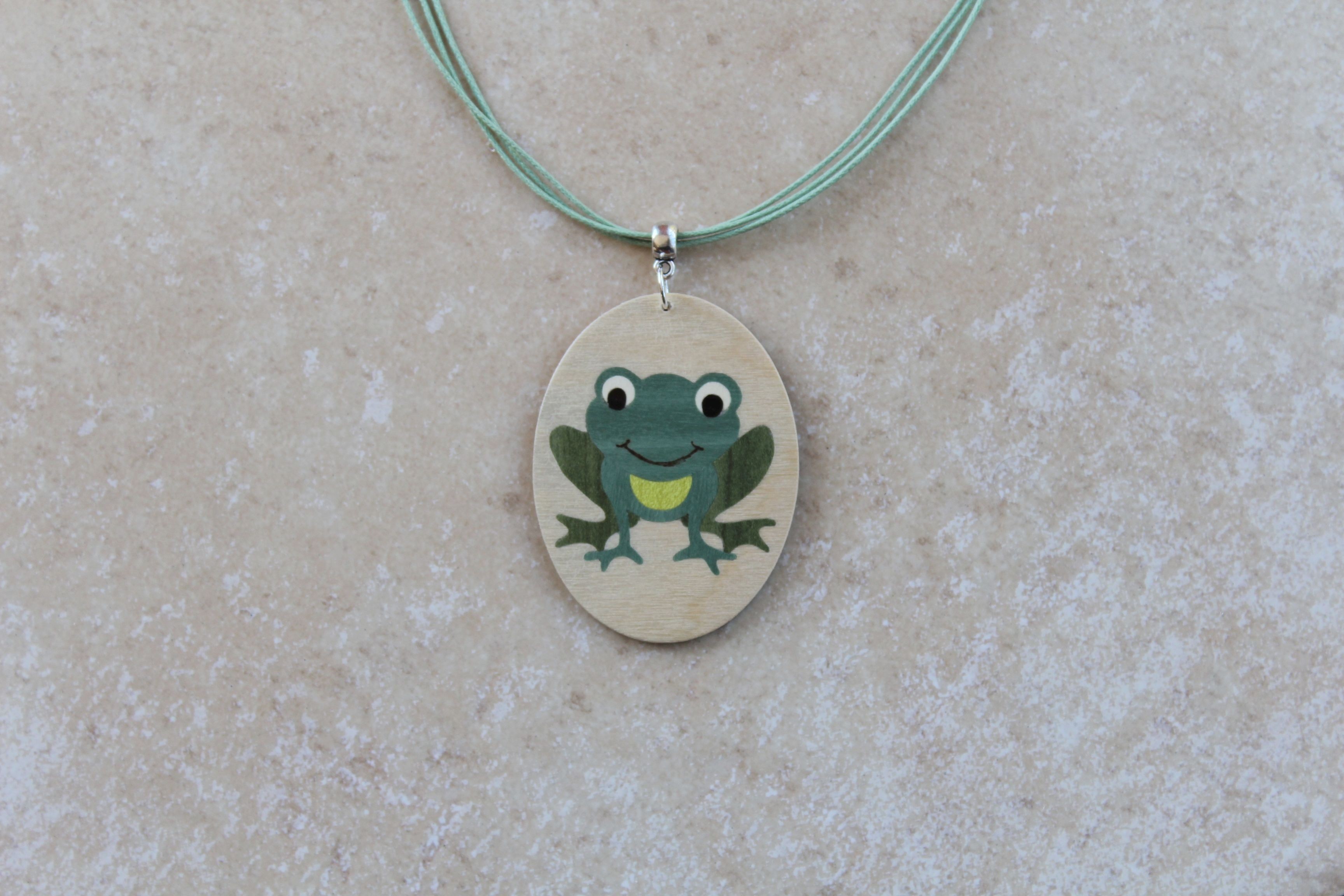 Ce collier en marqueterie bois - GRENOUILLE - ira à ravir à votre amie qui adore les grenouilles, forcément elle est météoroloque !