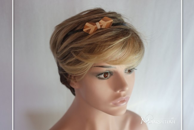 Serre tête noeud pap en marqueterie bois assorti d'un fil coton écru/crème