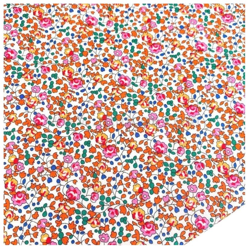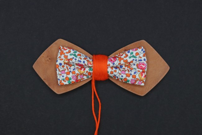Le "noeud" du milieu est réalisé en fil coton orange vif assorti au liberty