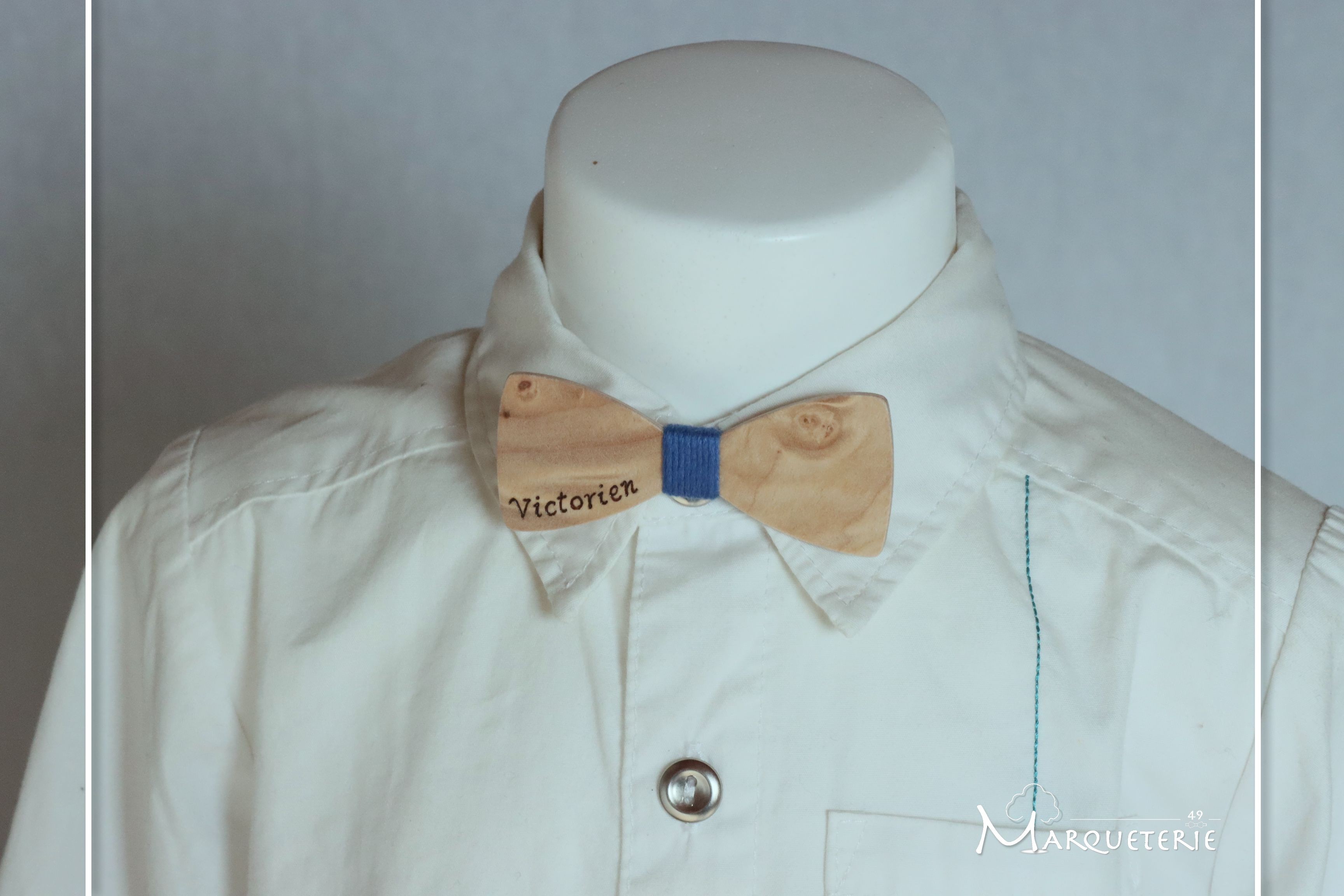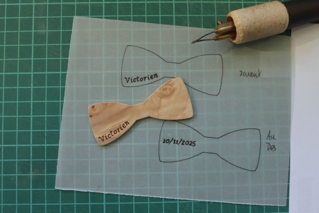 Pour assortir aux deux noeuds papillons que vous aviez déjà commandés il y a quelques années (https://marqueterie49.fr/1868584-Lot-noeud-pap-bois-pour-bebe-et-jeune-garcon-pour-leur-bapteme-avec-leur-prenom-en-pyrogravure)