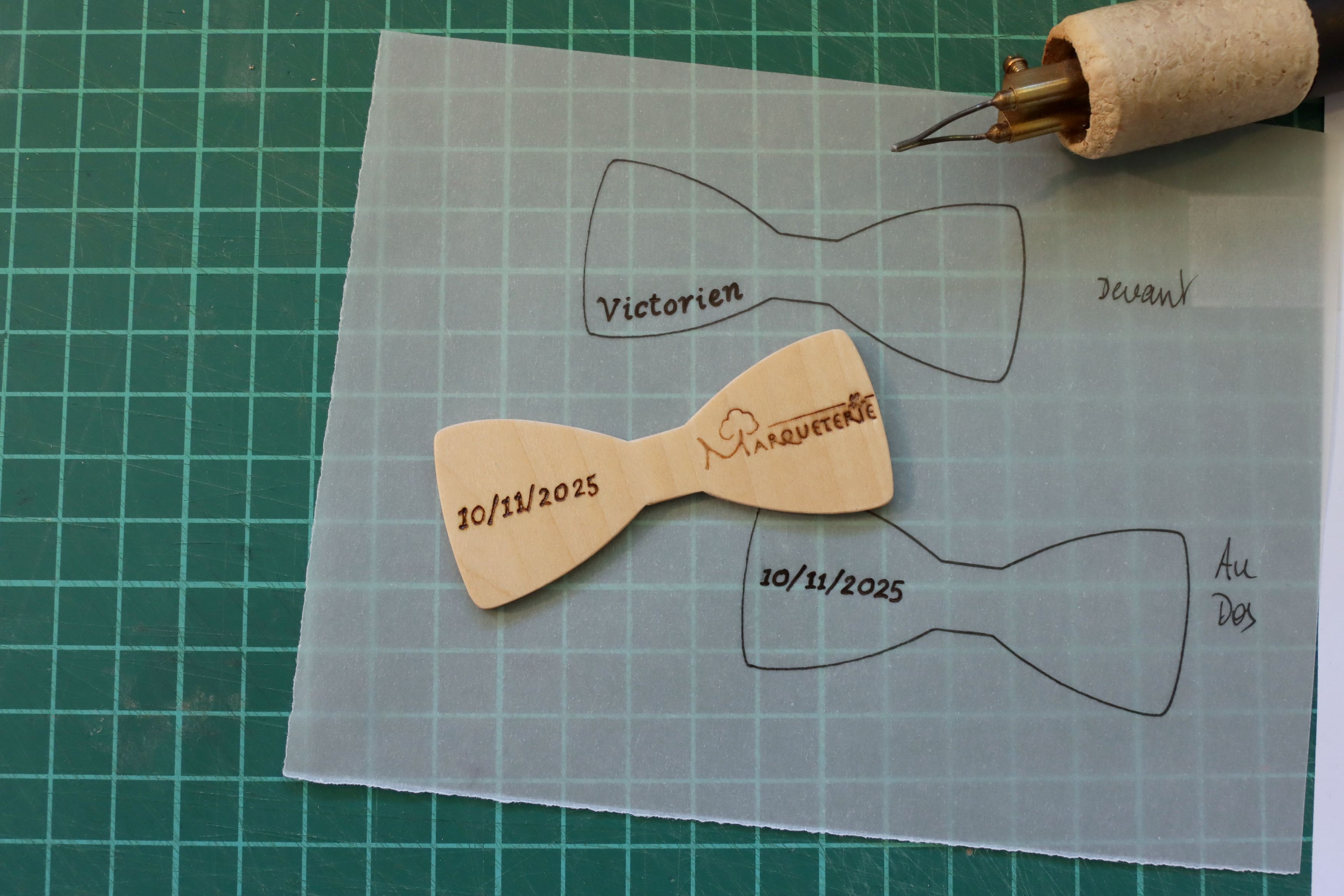Si vous le souhaitez, il existe une boite pour ranger ce noeud papillon : https://marqueterie49.fr/69801-boite-de-rangement-pour-noeud-papillon-en-bois.html