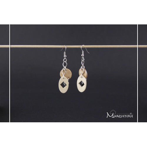 Boucles d'oreilles pendantes en bois - association d'un rond et d'un ovale